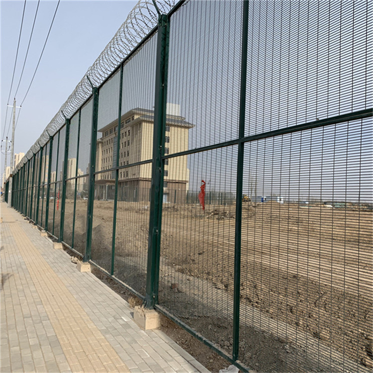 監獄鋼網墻又稱作"Y型安全防御護網”,是由V型支 架立柱加強型焊接片網,安全防盜連接件和熱鍍鋅刀片刺籠組成強度和安全