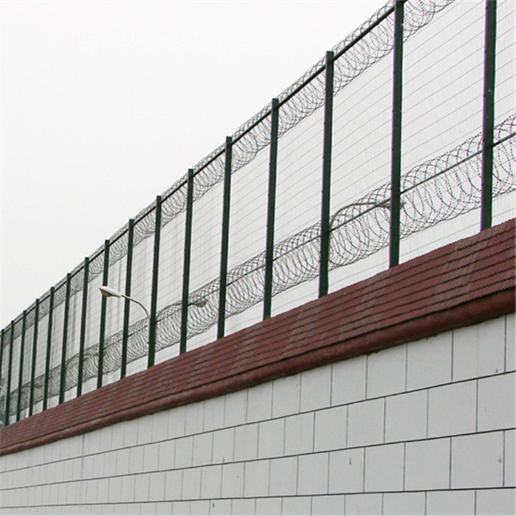 監獄防護網是一種新型防護網,也叫Y型刀片護欄網,它由銳利尖角鍍鋅鋼板或不銹鋼薄板做成刀片刺網,鋼絲做芯線組合而成的監獄圍墻防護利器!監獄刀片護欄網具有嚇阻、防翻越等效果。監獄刀片護欄網可平地安裝,也可在圍墻上二次安裝,有效防止攀逃。直刺式刺網隔離帶,是用柱體和普通刺繩橫、縱、斜向交叉綁定成刺網隔離帶。 監獄刀片護欄網的材質堅硬,具有高強度,高張力,造型設計獨特,不宜觸摸,因而能達到極好的防護隔離效果。